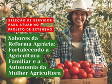 O IFPB Campus Sousa deu início, nesta quarta-feira (22,) a um processo seletivo simplificado de seleção interna para a função de Coordenador-geral do projeto de Extensão “Sabores da Reforma Agrária: Fortalecendo a Agricultura Familiar e a Autonomia da Mulher Agricultora”. Podem participar da seleção professores do quadro permanente do IFPB que tenham curso de Graduação (nas modalidades de Bacharelado, Licenciatura ou Tecnólogo) na área de Ciência e/ou Tecnologia em Alimentos. Além da formação acadêmica mínima, os profissionais selecionados devem habilidades e competências para desenvolver atividades relacionadas à gestão das condições materiais e institucionais para a execução do projeto, bem como para supervisionar as atividades de capacitação e atualização dos envolvidos na ação de Extensão.
